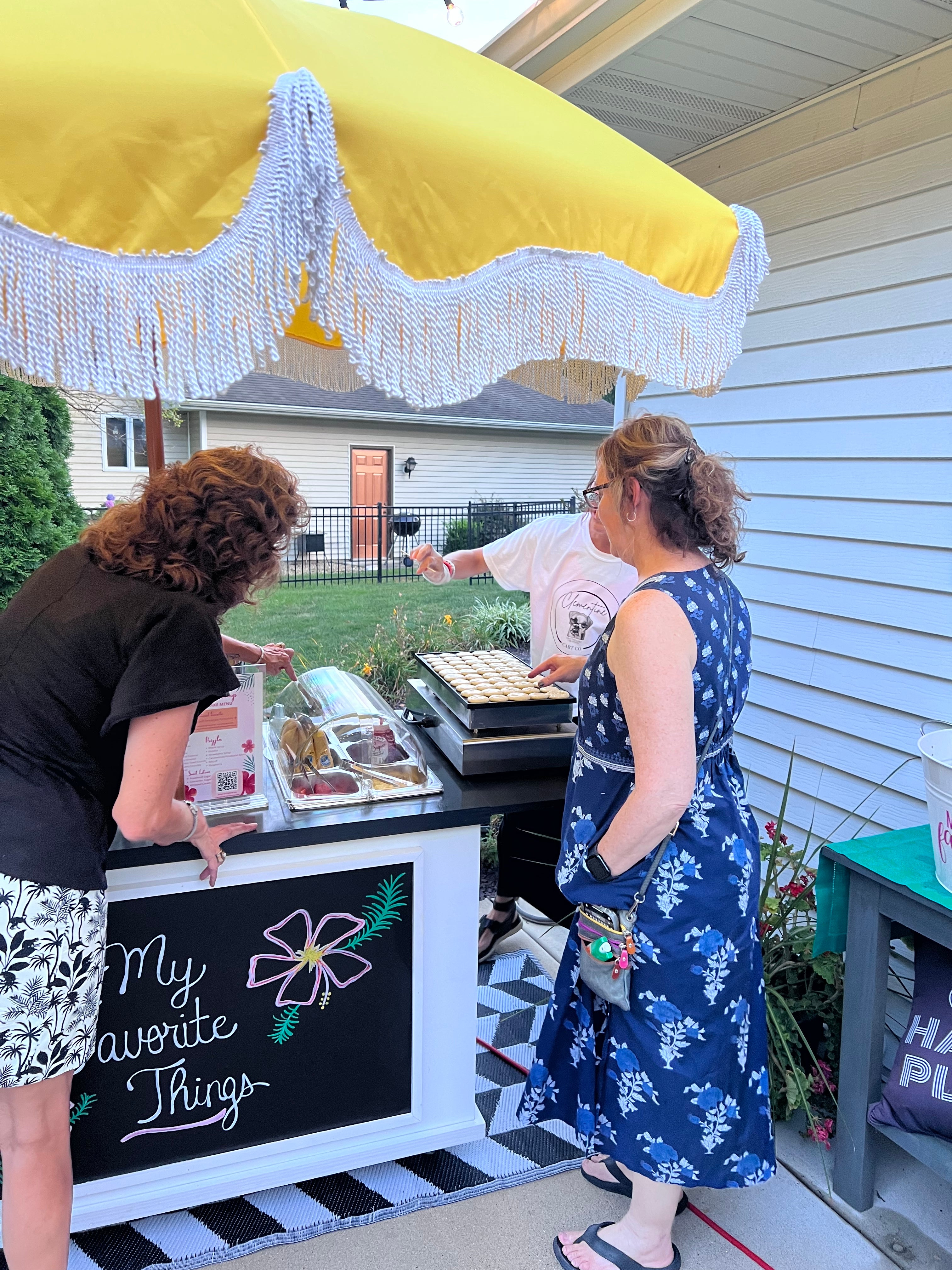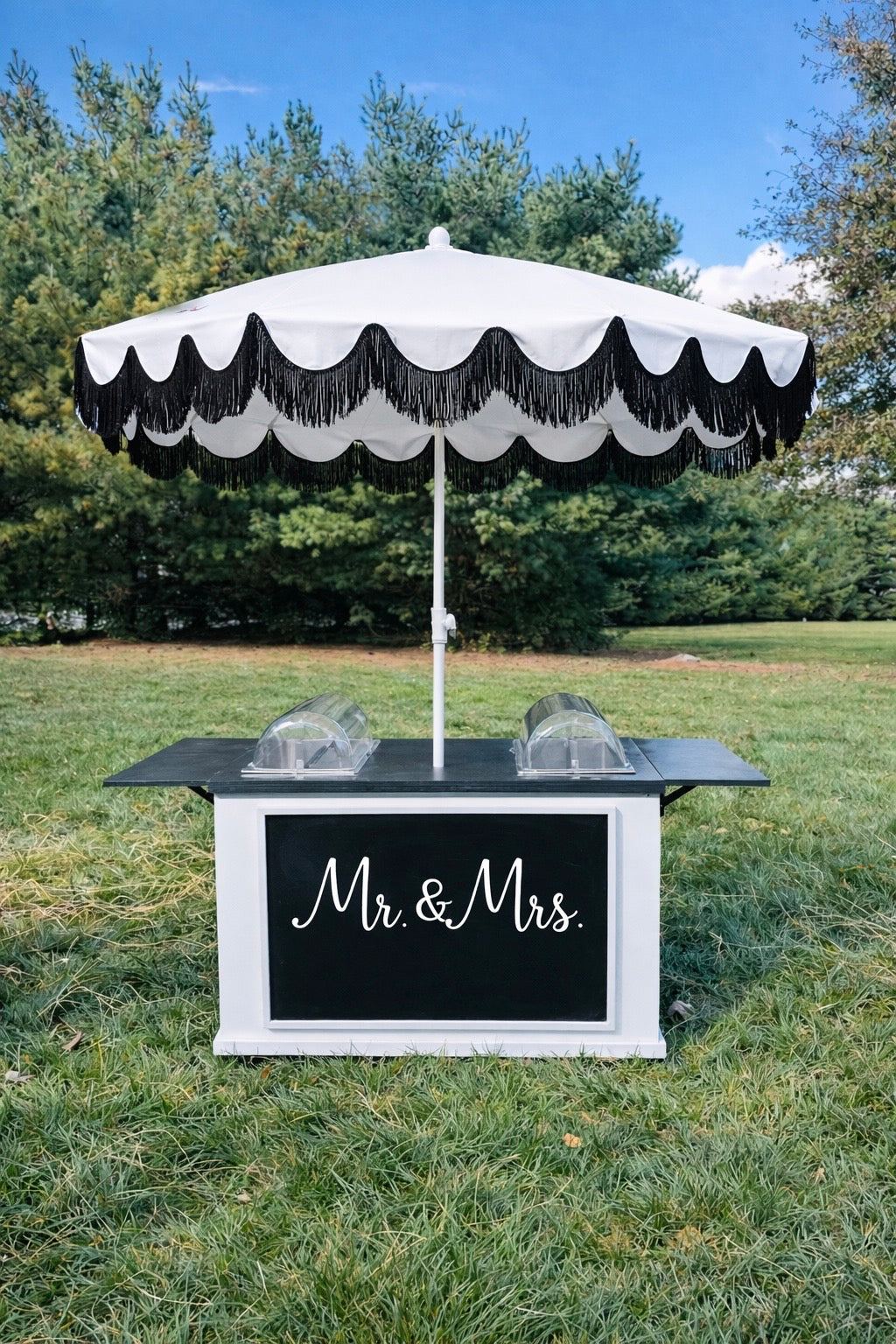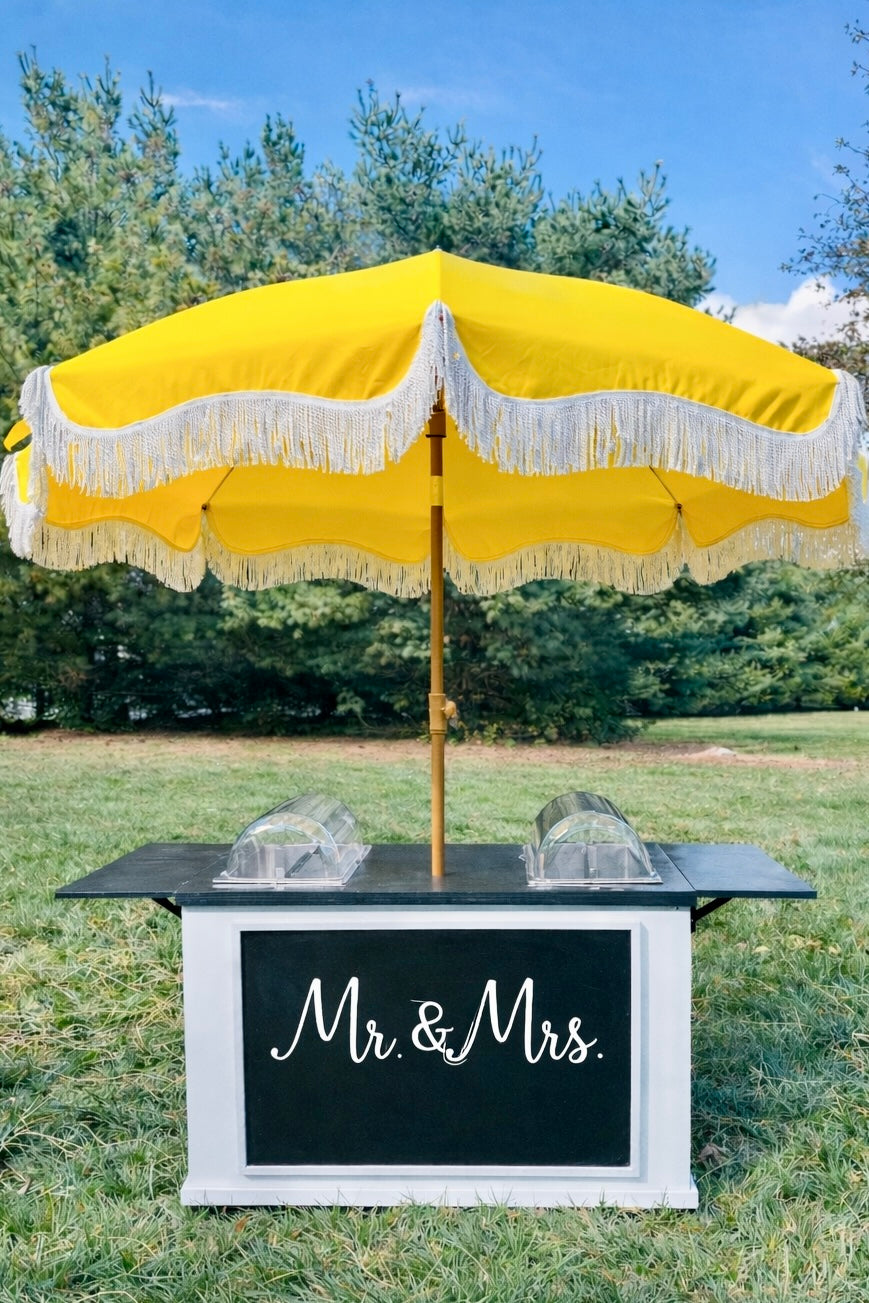 Our Signature Umbrella Cart features a classic fringe umbrella and an inviting design that encourages guests to gather and enjoy the moment. Perfect for serving mini pancakes, desserts, or curated bites, it adds a playful yet polished touch to any celebration.