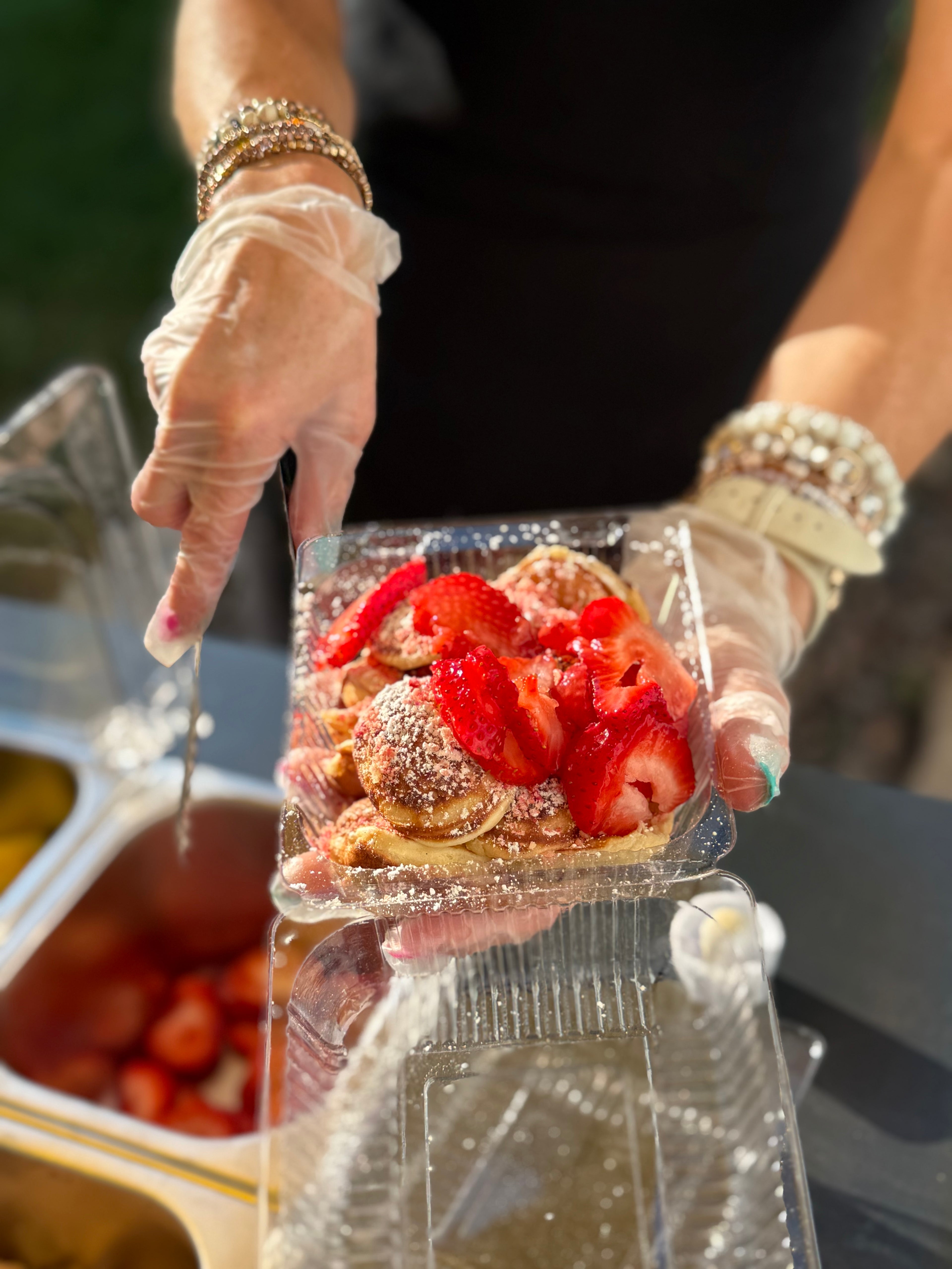 Fresh, made-to-order mini pancakes served from a charming cart your guests will talk about long after the last bite.