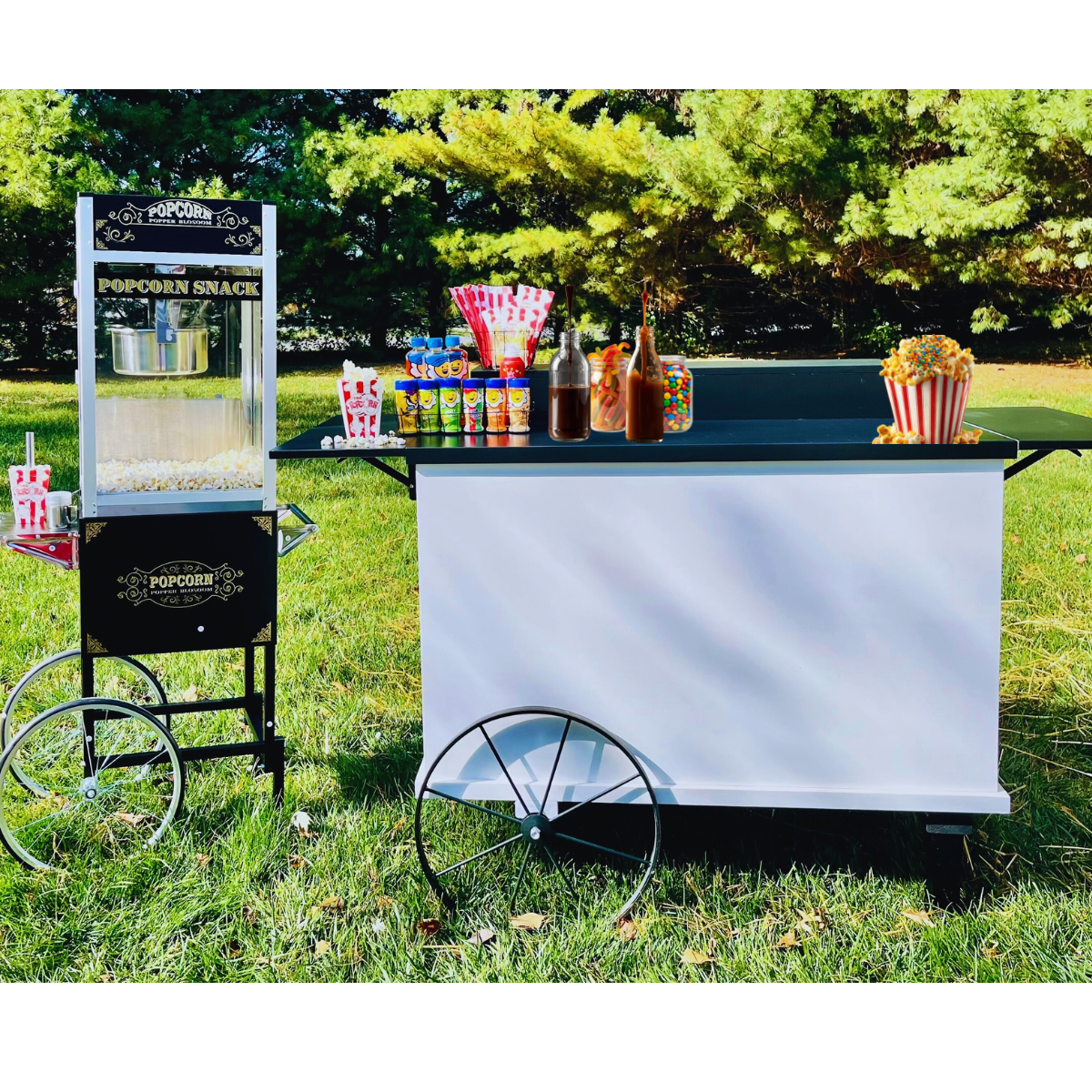 Our Lux Cart is perfectly suited for popcorn service, dessert displays, and showcasing wedding cakes or favors.